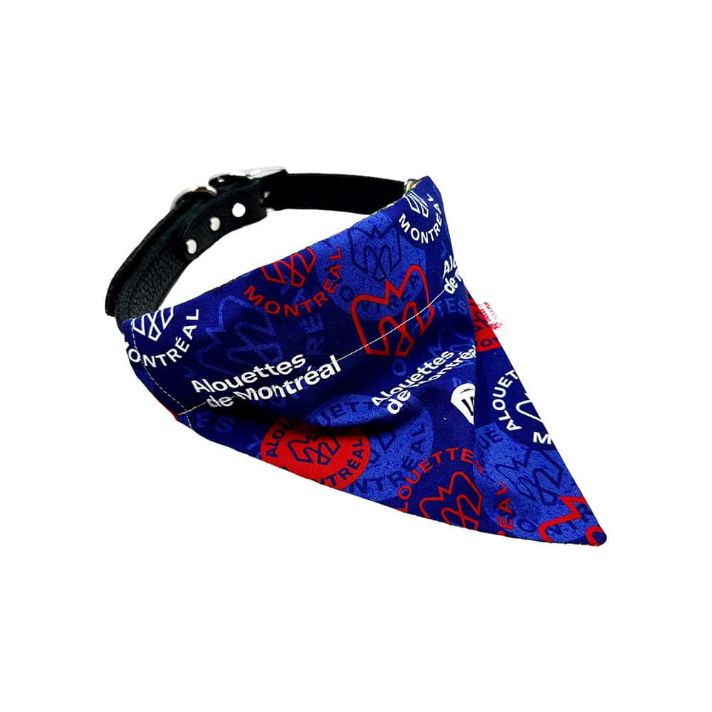 - Our Montreal Alouettes dog bandana will easily slip over the collar, no worrying about tying it too tight or too loose around your dog’s neck
