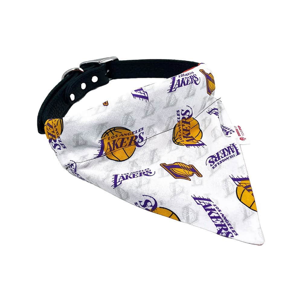- Our Los Angeles Lakers dog bandana will easily slip over the collar, no worrying about tying it too tight or too loose around your dog’s neck