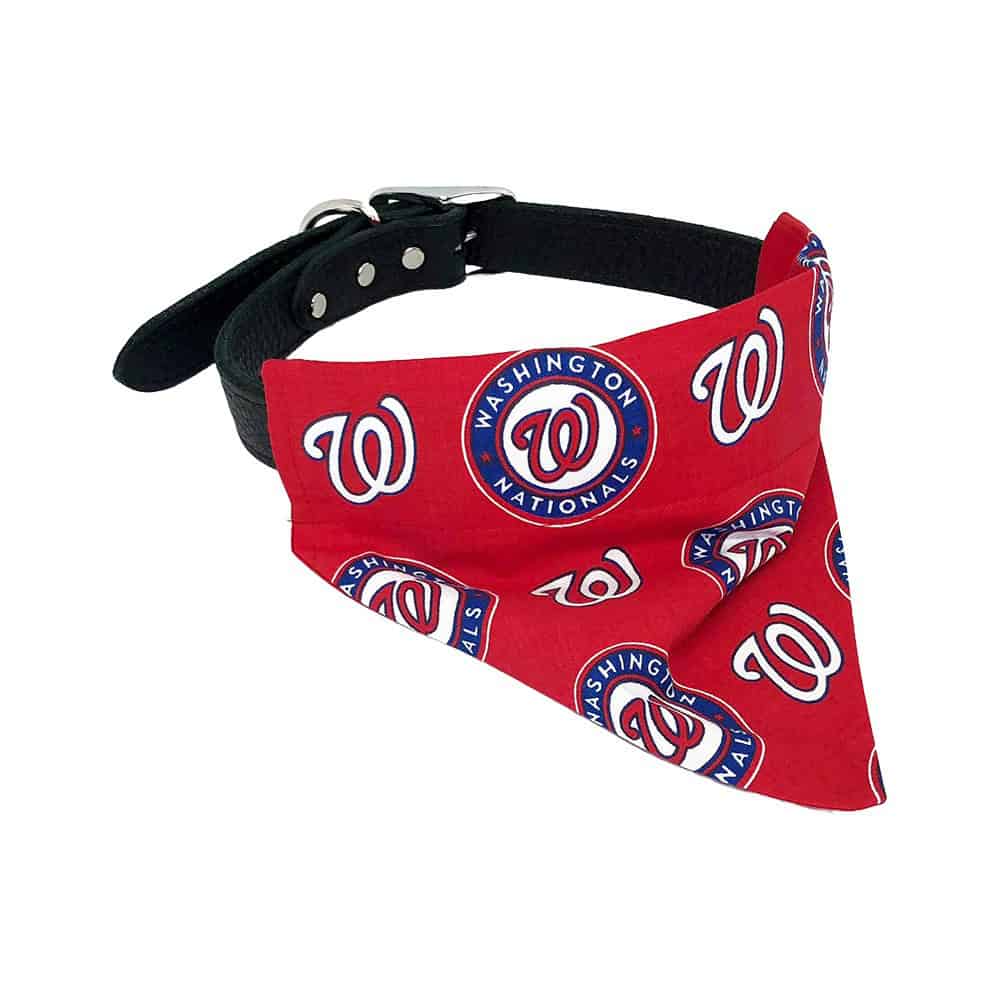 - Vår Washington Nationals hundbandana glider lätt över halsbandet, du behöver inte oroa dig för att knyta den för hårt eller för löst runt din hunds hals